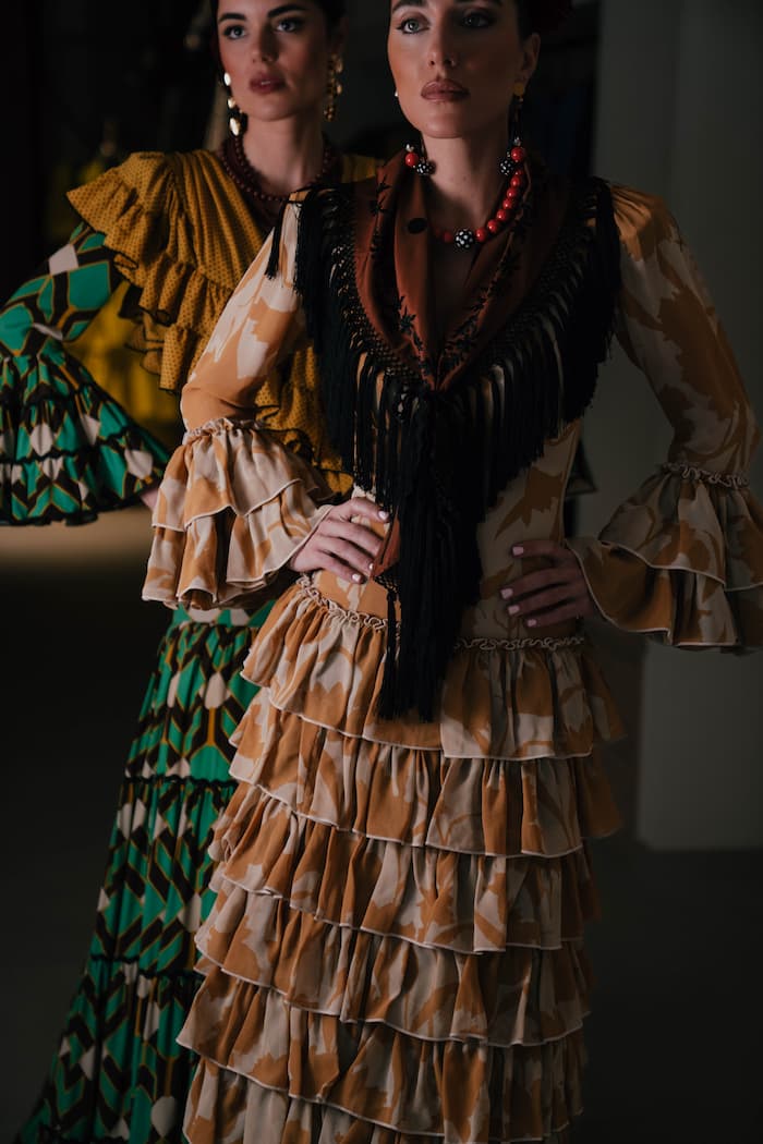 El vestido de flamenca en Georgette estampado representa el equilibrio entre tradición y modernidad, y es perfecto para lucir en ferias, romerías o sesiones editoriales donde la moda flamenca brilla con personalidad propia.