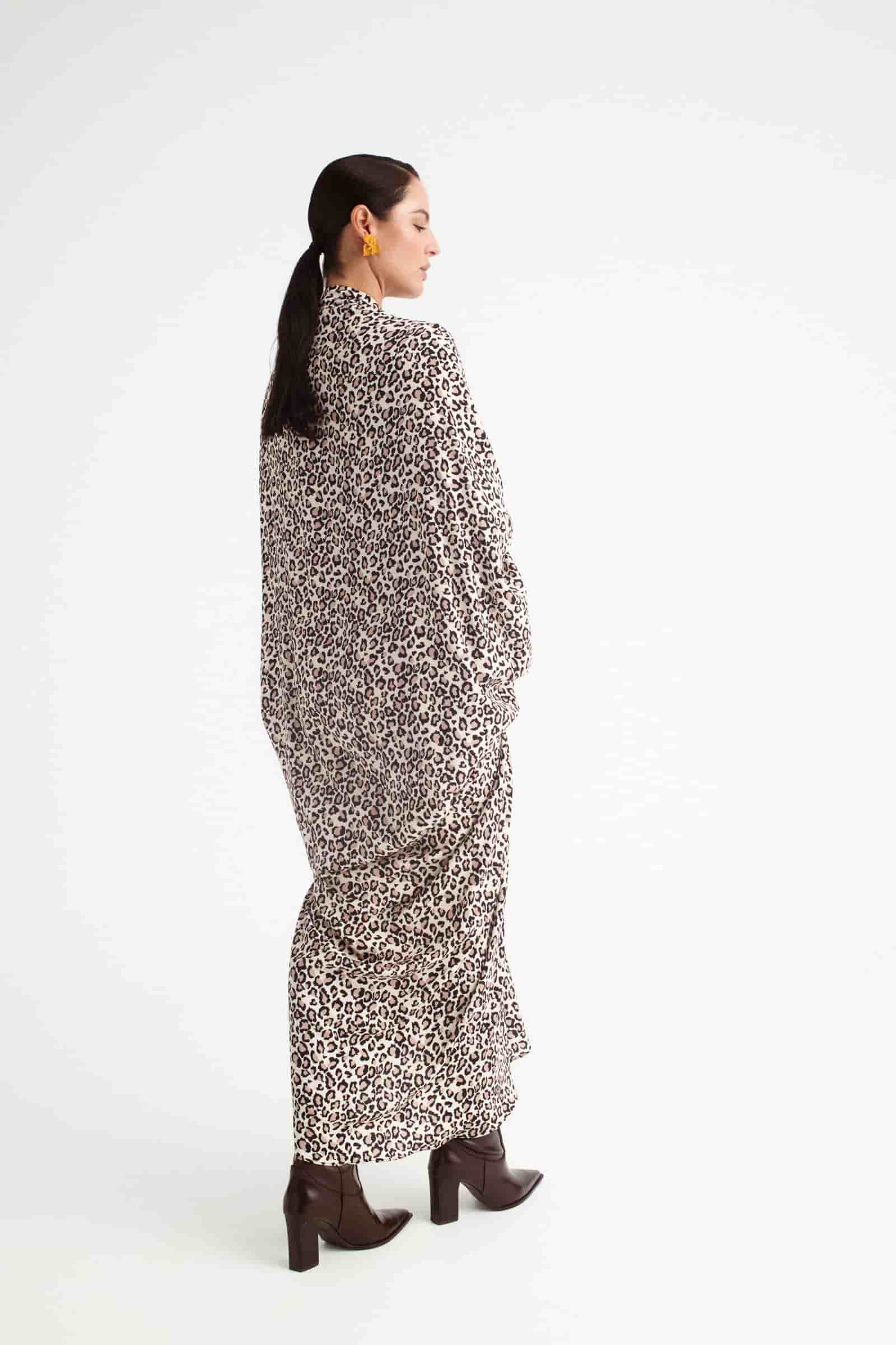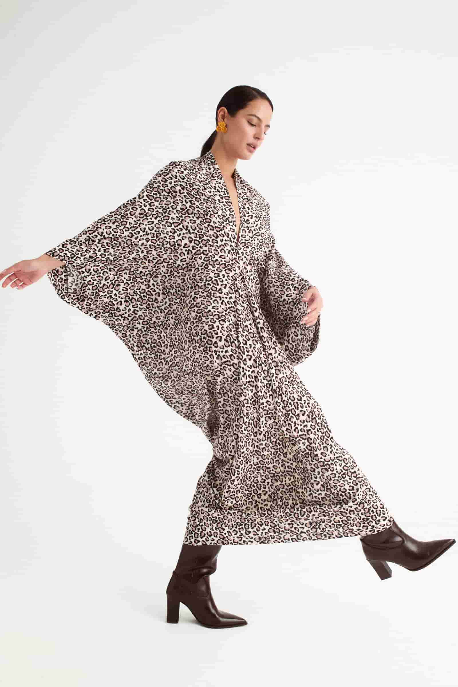 Vestido Shaira: caftán tipo kimono con estampado leopardo clásico